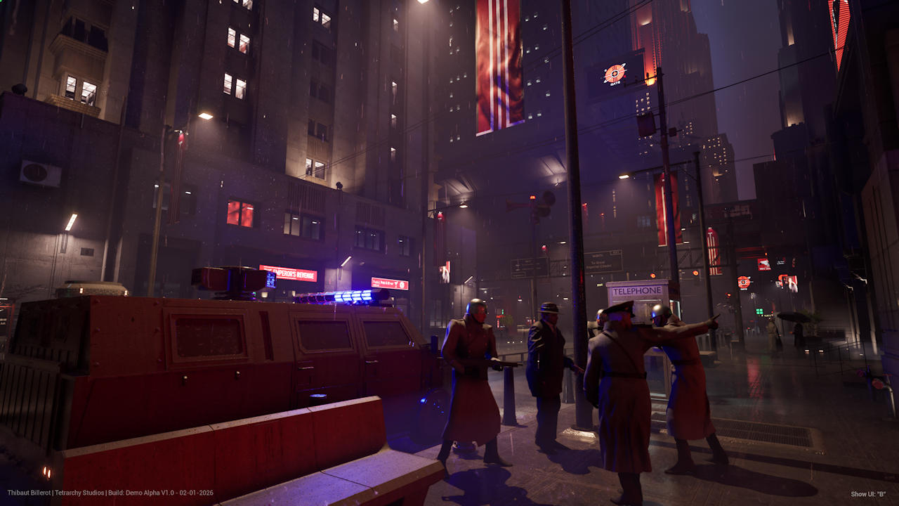 Broadly speaking, then, the game promises layered detective work, political intrigue, and choice-driven dialogue. The investigation itself sounds pretty classic at its core: you interrogate suspicious characters, search urban environments, collect clues, and manipulate the game's factions, which go by the wonderfully unsubtle names Dissidents and Loyalists.
