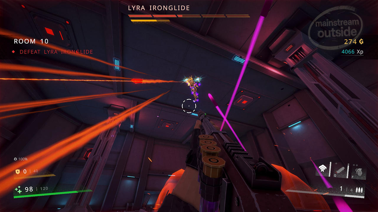 If you think you’re getting a vault’s shiny tech back without stepping over some boss corpses, you’re wrong. In the demo, the last room of the Tutorial Vault pitted me against “golden” Lyra Ironglide. “She’s” not especially large, but a tough final enemy.