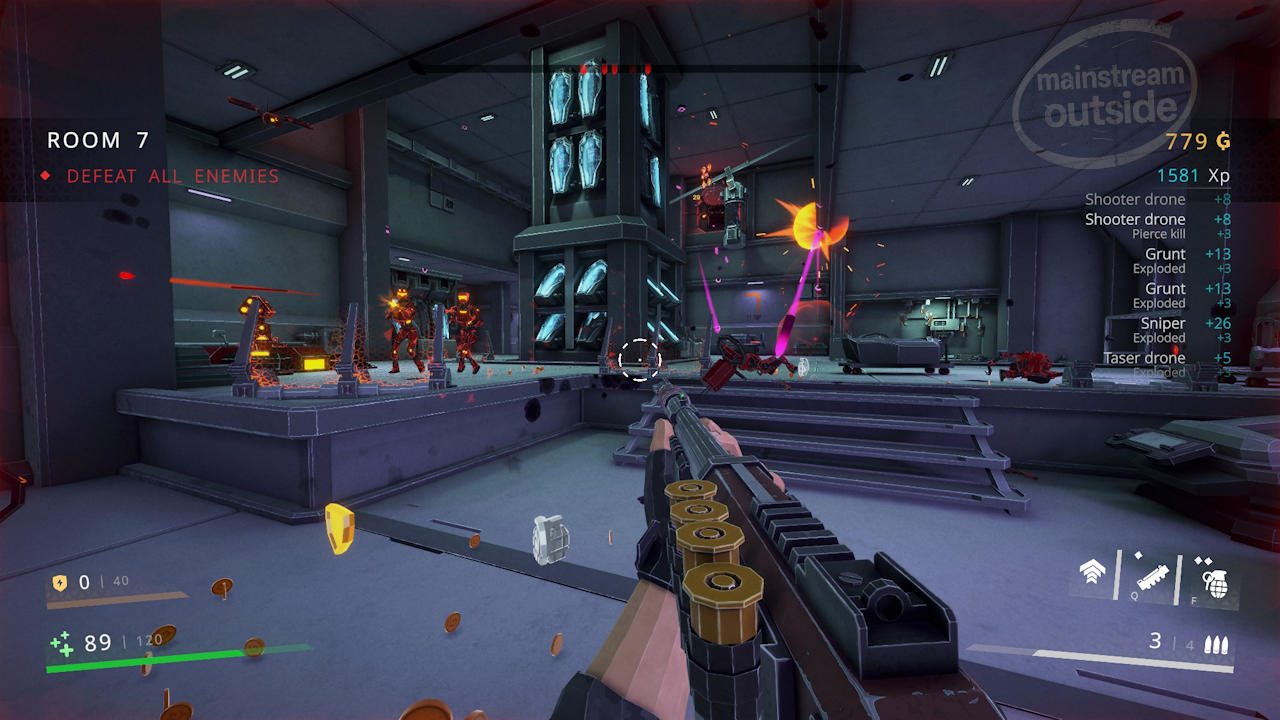 After playing the free demo, I’m honestly surprised to say: it works. While I was booting drones, bots, and turrets up the backside (or, in the turret’s case, into the base), the arcadey “next room please” flow didn’t annoy me even a little. Here’s why Galactic Vault landed for me.