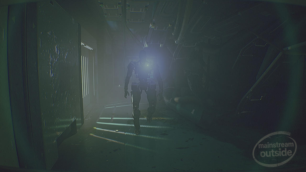 So the thing forces you to prick up your ears and improvise, because you never quite know where it’ll come pestering you next. Luckily, you can slam doors in a pursuer’s face (briefly slowing them down), escape through air vents, hide in hard-to-see corners of living quarters, and more. Thanks to these options, Routine never gets too punishing—only the beginning asks you to first get a feel for the enemies.
