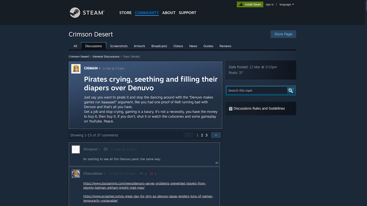 On the forums of Steam, people keep "debating" software piracy. In practice, that usually means this: