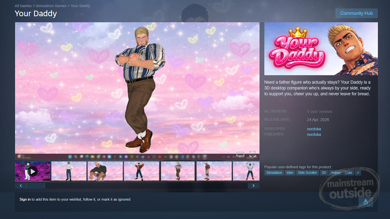 You can also customize your new daddy to your liking (size, clothes, poses) and interact with him via right-click. He even takes into account whether you’re his son or daughter. Kind of cool, right? I think I may be getting a new daddy soon too.