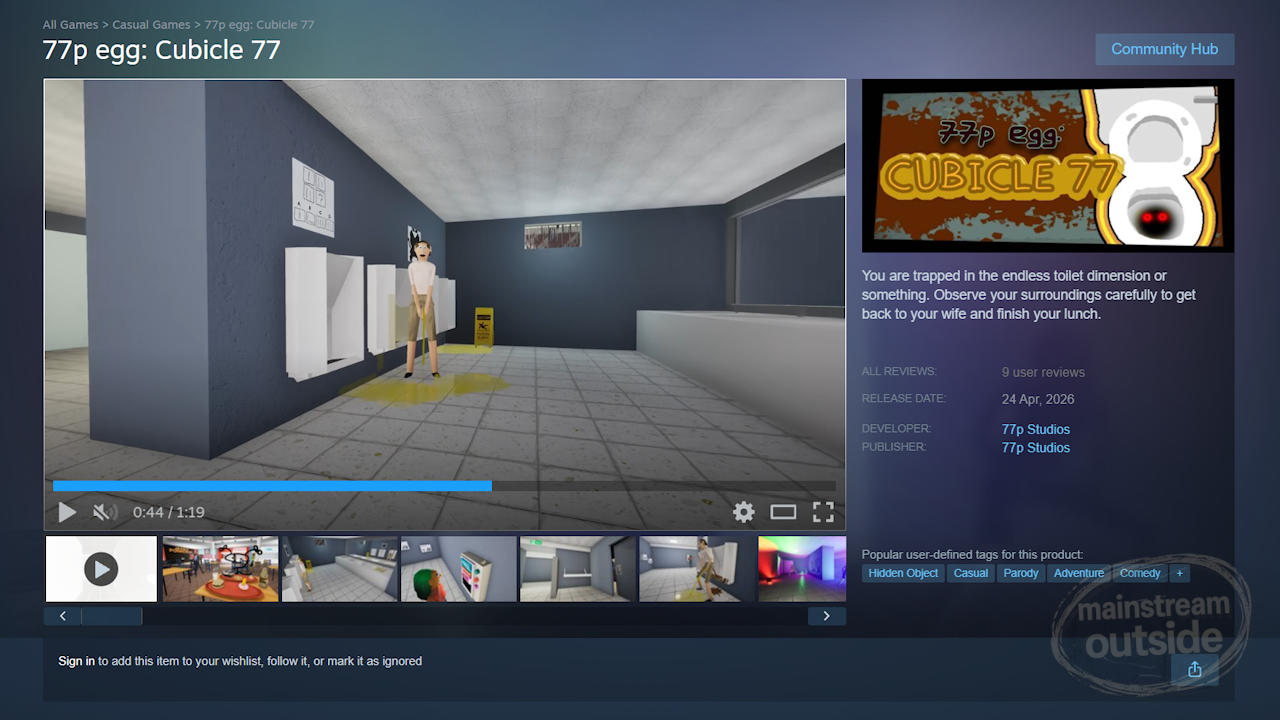Yes, yes: 77p egg: Cubicle 77 is, of course, one of the now criminally overpopulated anomaly games. The rules are simple: if you don’t see an anomaly, you have to use a toilet (the developer puts it a bit more bluntly). If you do see an anomaly, you have to move on to the next bathroom. Mistakes are bad because after one wrong decision, you’re quite literally deep in the sh...