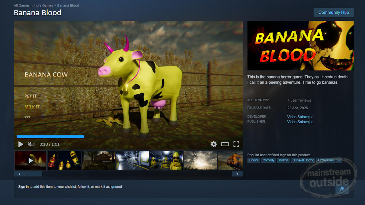 Can bananas bleed? Well, in Banana Blood they can at least scare you. Yes, everything in this first-person horror game really is bananas. Even the cows you run into are somehow banana-coded. That’s why they’re banana cows.